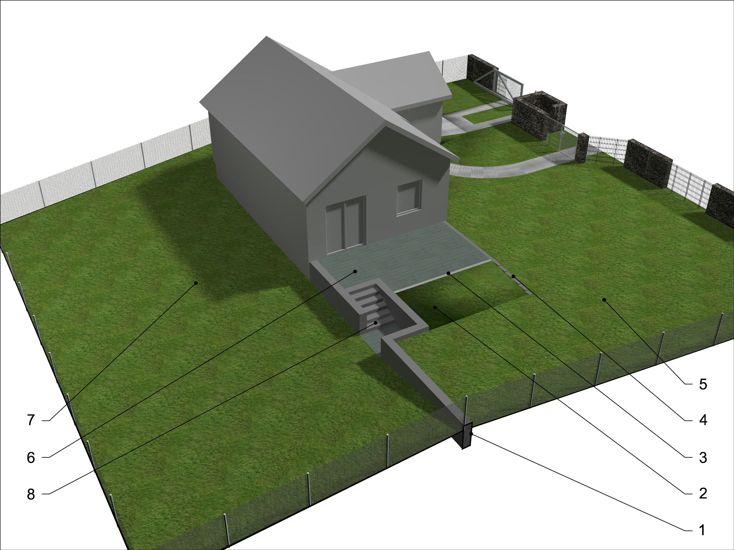 1. Żelbetowa ściana oporowa rozdzielająca dwie części ogrodu